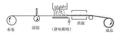 进料→上浆→植绒→烘干→刷毛→后整理→成品