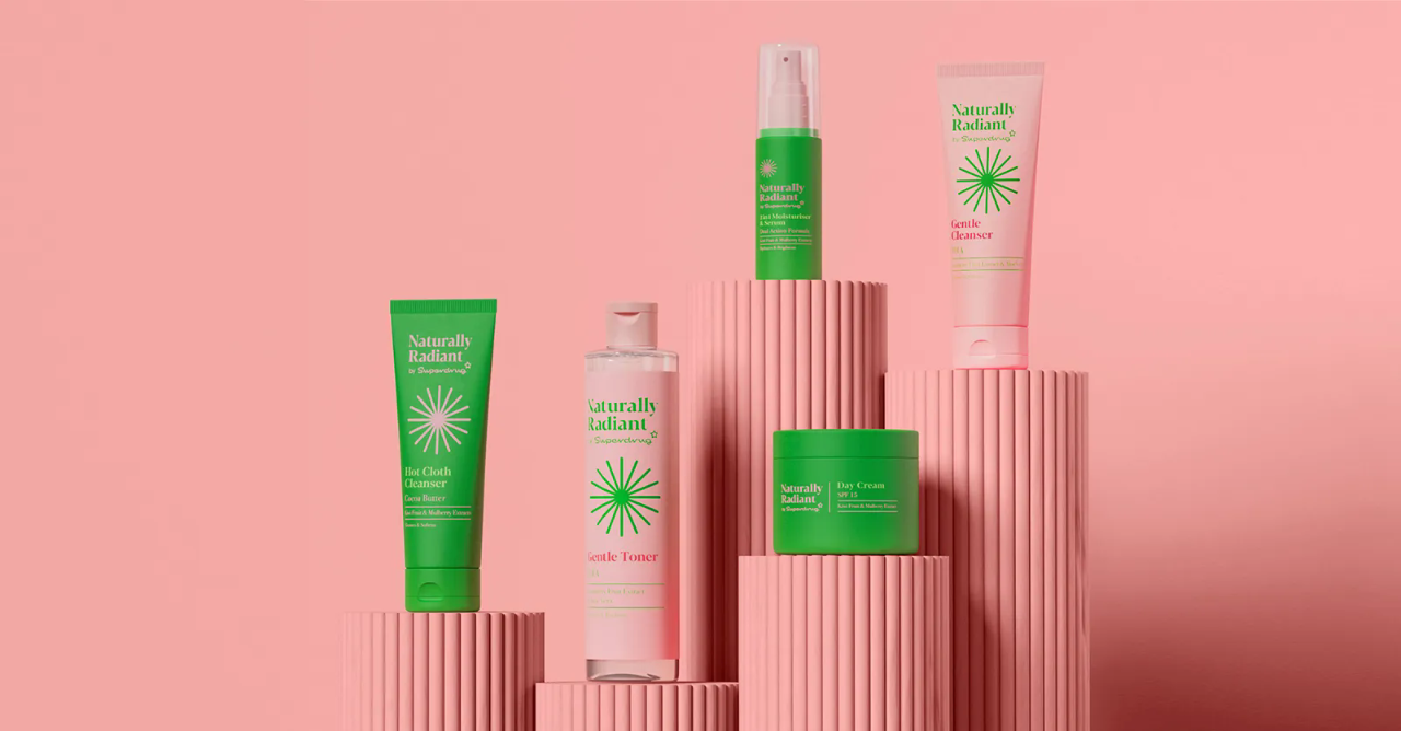 超级药物(Superdrug)面临这一挑战,致力于为其知名的护肤系列——自然辐射(Natural Radiant)打造一个既引人注目又富有活力的包装设计,以便与市场上其他更具挑战性的品牌竞争。目标是通过全新的视觉形象,强调该系列产品增强皮肤自然光泽的核心承诺,同时传达优质、易于使用的护肤解决方案。