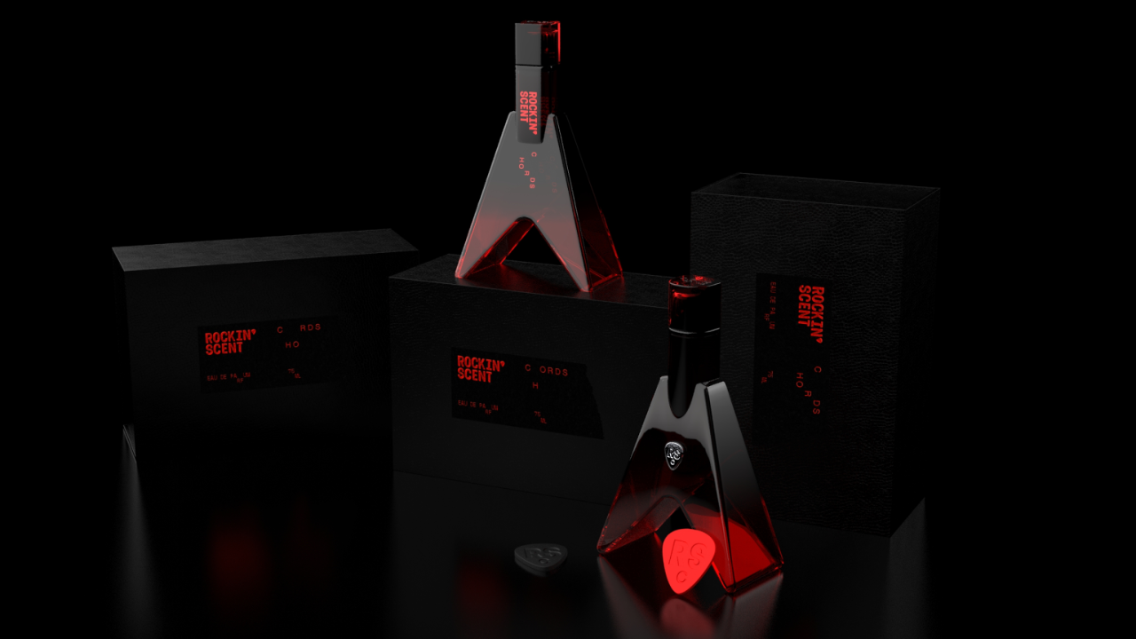 摇滚香水的包装设计灵感来源于摇滚精神——自由、叛逆与独立。我们力求通过视觉元素来捕捉这种无拘无束的力量感。包装的每一细节都融合了反叛和独立的美学,从瓶身的独特造型到图案的大胆运用,每一处设计都透露出它对常规的挑战与对个性的庆祝。