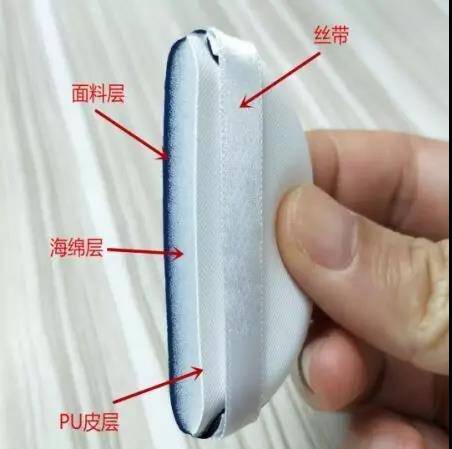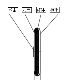 将面料层,海绵层,PU皮层利用水溶性胶黏剂,通过滚压复合,形成三明治结构的三层复合片材 三层复合片材的干燥处理,目的是将胶黏剂中的水分充分挥发出去,将三层片材粘牢。室内温度和干燥时间是影响片材复合质量的关键因素。注意:这一步工艺,一定要选用胶水粘合工艺,如果采用热熔胶工艺,虽然速度快了很多,但是产品容易出现分层,影响上妆效果。 将干燥好的片材置于模具内,进行特定形状粉扑的冲压和封边。该步骤有两个关键控制参数:热封温度,热封时间;一个关键部件:冲切模具。三者配合,对粉扑封边牢度,成品率起关键作用。注意:封边工艺的好坏,决定了粉扑是否会出现爆边。将丝带用特制缝纫机进行加工,规格尺寸符合用户要求。产品结构