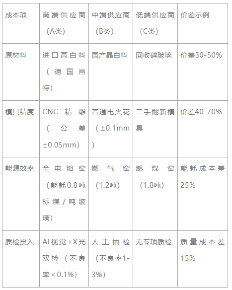 要求供应商提供分项成本清单(原料占比/能耗/人工) 查验玻璃材质证明(SGS报告中的SiO₂/B₂O₃含量)