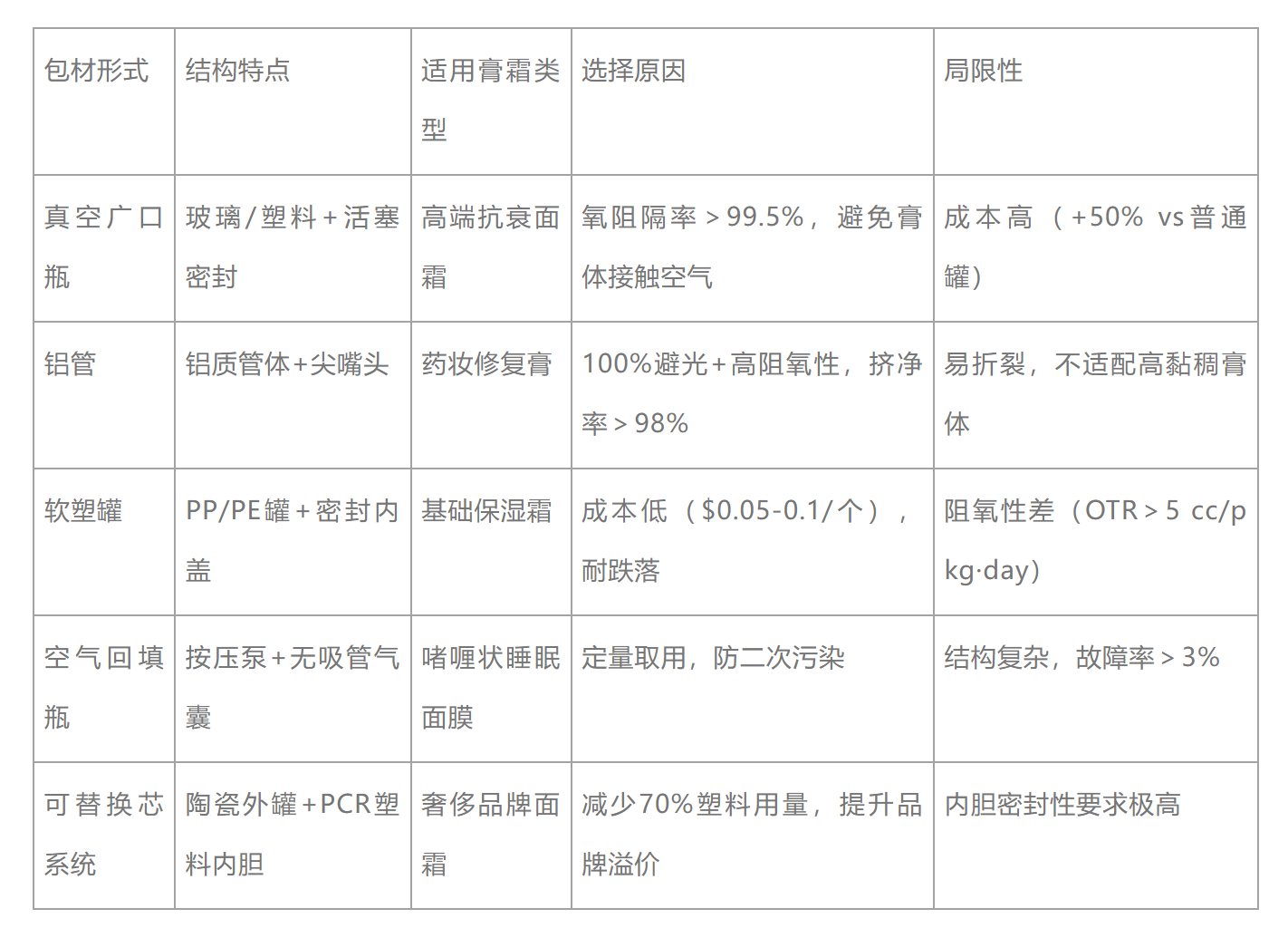 视黄醇抗衰霜 → 真空玻璃瓶+氮气填充(绝氧保护活性成分)